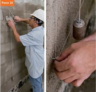 quadrado. Com o fio de prumo, faça os ajustes necessários na marcação da linha