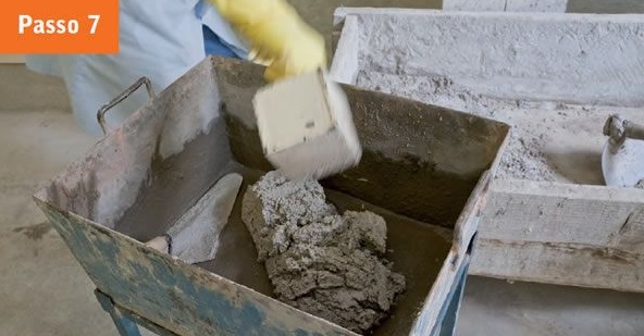 proporção de dez partes de massa para uma de cimento - ou conforme orientação de