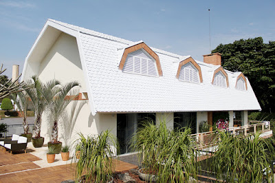 - Cobertura metálica para casas, galpões e indústrias: painéis de aço pintados de branco.
